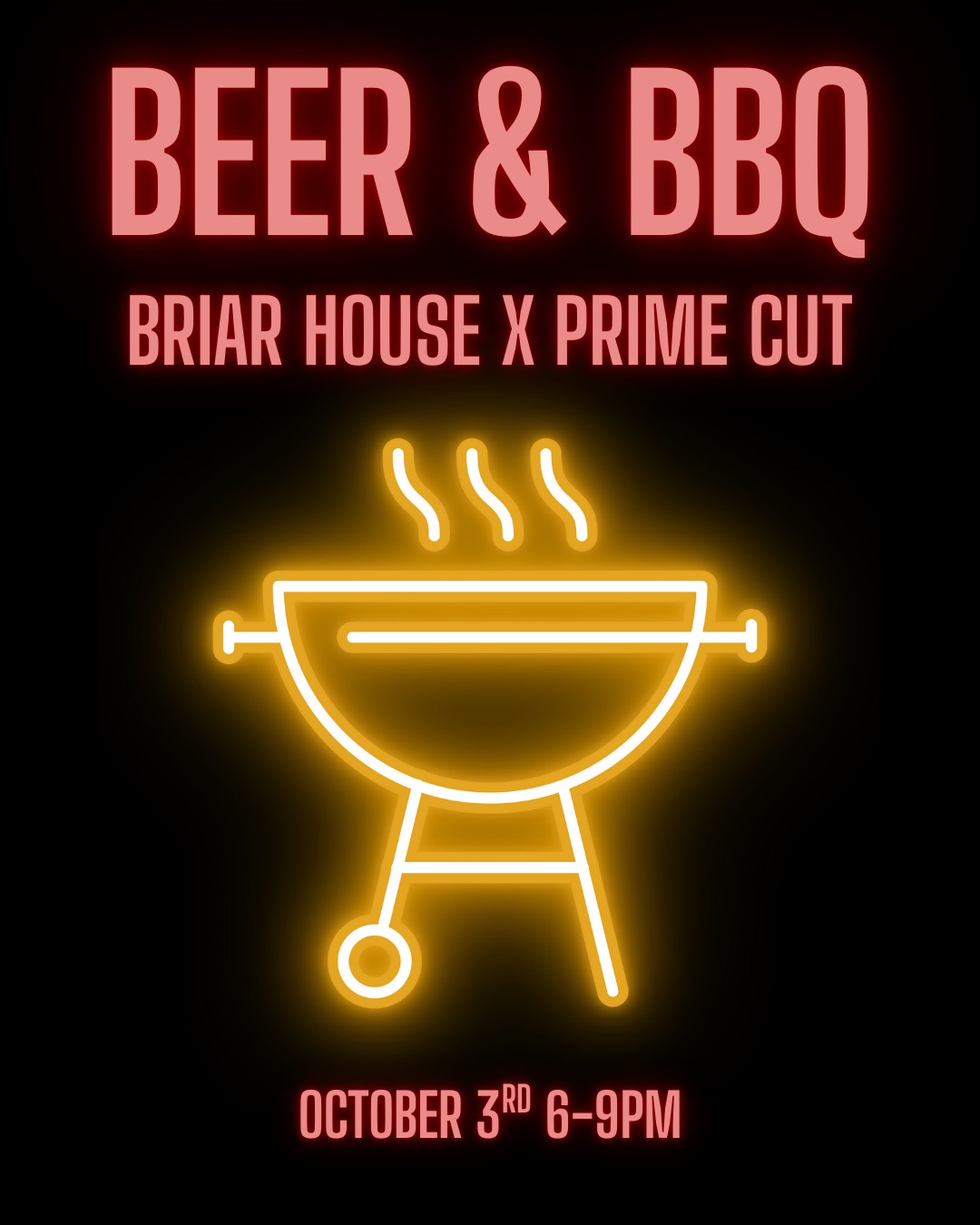 Join us for beer and BBQ! Prime Cuts will have their truck parked back by the patio starting at 6 pm! We will also have live music out on the patio!
