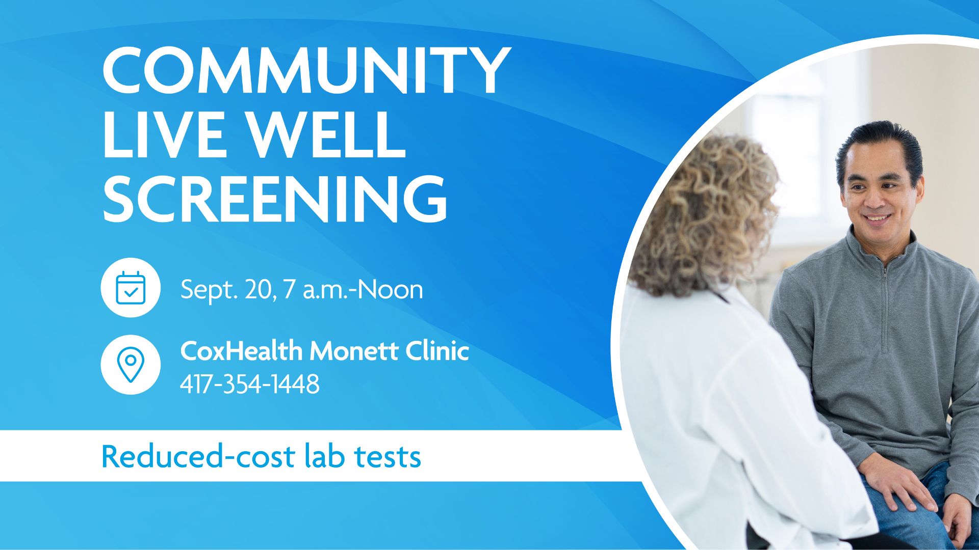Cox Monett Hospital invites the entire community to come together for a morning of better health and family fun at this year’s Community Live Well Screening.