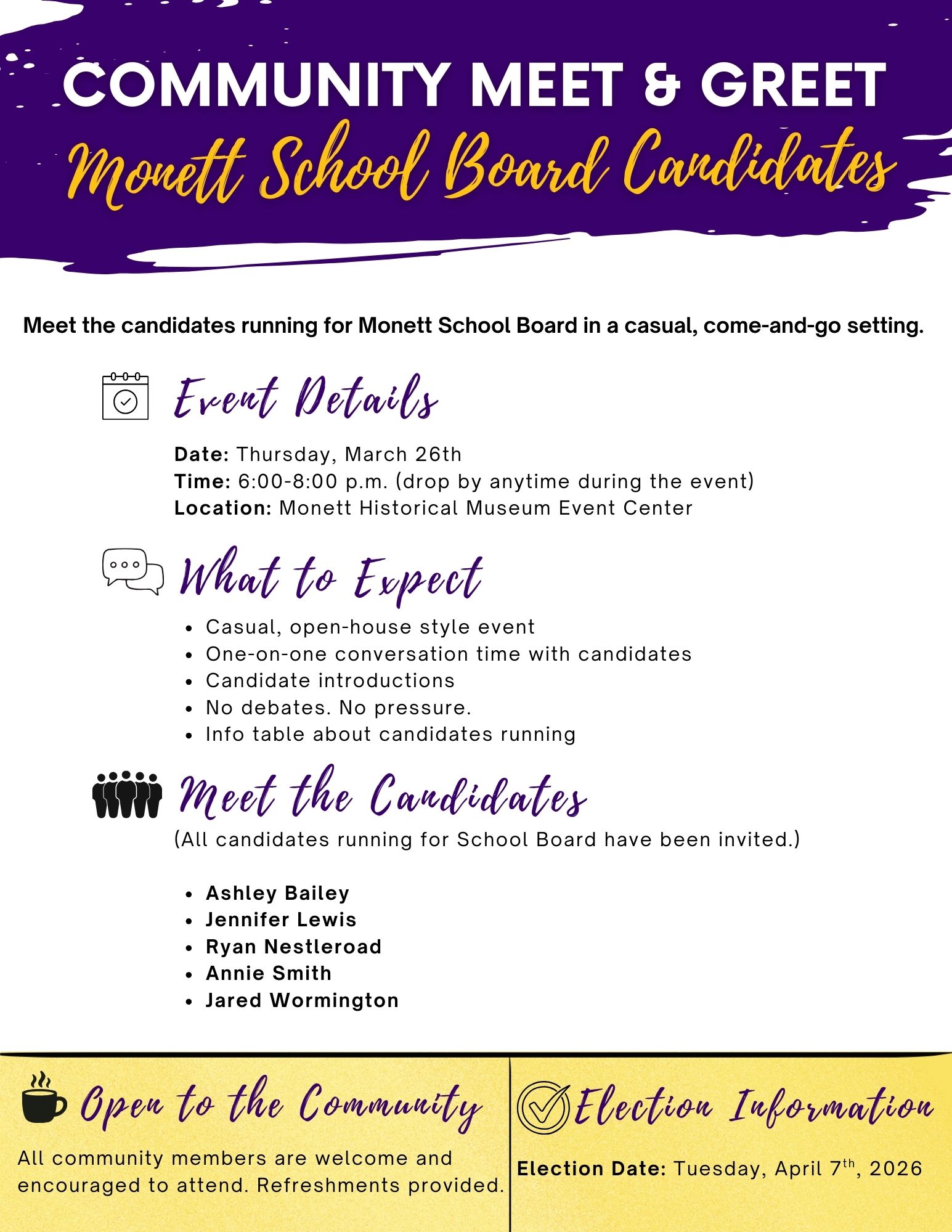 Monett R-1 School Board Candidate Meet & Greet ’26